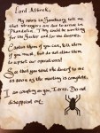 There are two documents discovered in one of the rooms. One is a letter addressed to “Lord Albrek” from the elusive Black Spider warning him of a group of strangers heading his way. Another is a document noted “To: Exandria, From: Waypoint 6.” It is a list of different races, ordered by count and denotes health, sex, and worth. Could it be this Lord Albrek, the assumed Glass Staff the group fought earlier, was operating a slave trade?